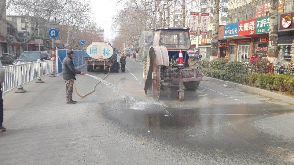 在工地現(xiàn)場,由于切割路面的開槽機行進過程中會產(chǎn)生大量揚塵,工程項目部積極采取多項措施降塵,有效保證了將揚塵對周邊市民的影響降至最低。
