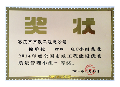 “古城”QC小組榮獲2014年度全國市政工程建設(shè)優(yōu)秀質(zhì)量管理小組一等獎(jiǎng)