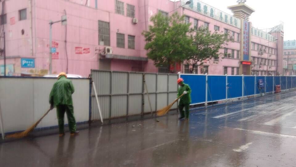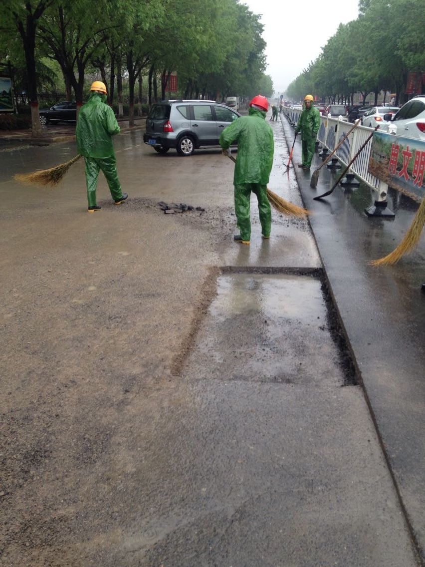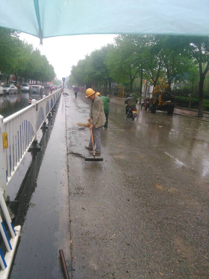 雨情就是命令,面對突如其來的降雨,工程項目部緊急啟動應(yīng)急預(yù)案,組織開展不受降雨影響的舊路面結(jié)構(gòu)層拆除和清掃工作。盡管雨不停地下著,卻澆不息現(xiàn)場施工人員保質(zhì)量、搶進度的工作熱情。每個人都在認真負責(zé)地堅守著自己的崗位。就連施工隊伍工人也受到這種熱烈氣氛的鼓舞,不停地舞動著他們手中的工具,清掃著。車輛、行人也在項目部成員的指揮下,井然有序的通行著。額頭上的是雨水、還是汗水也分辨不清,但大家仍精神飽滿,不敢懈怠,都全力為早一天開放交通,為市民出行提供方便而緊張工作。